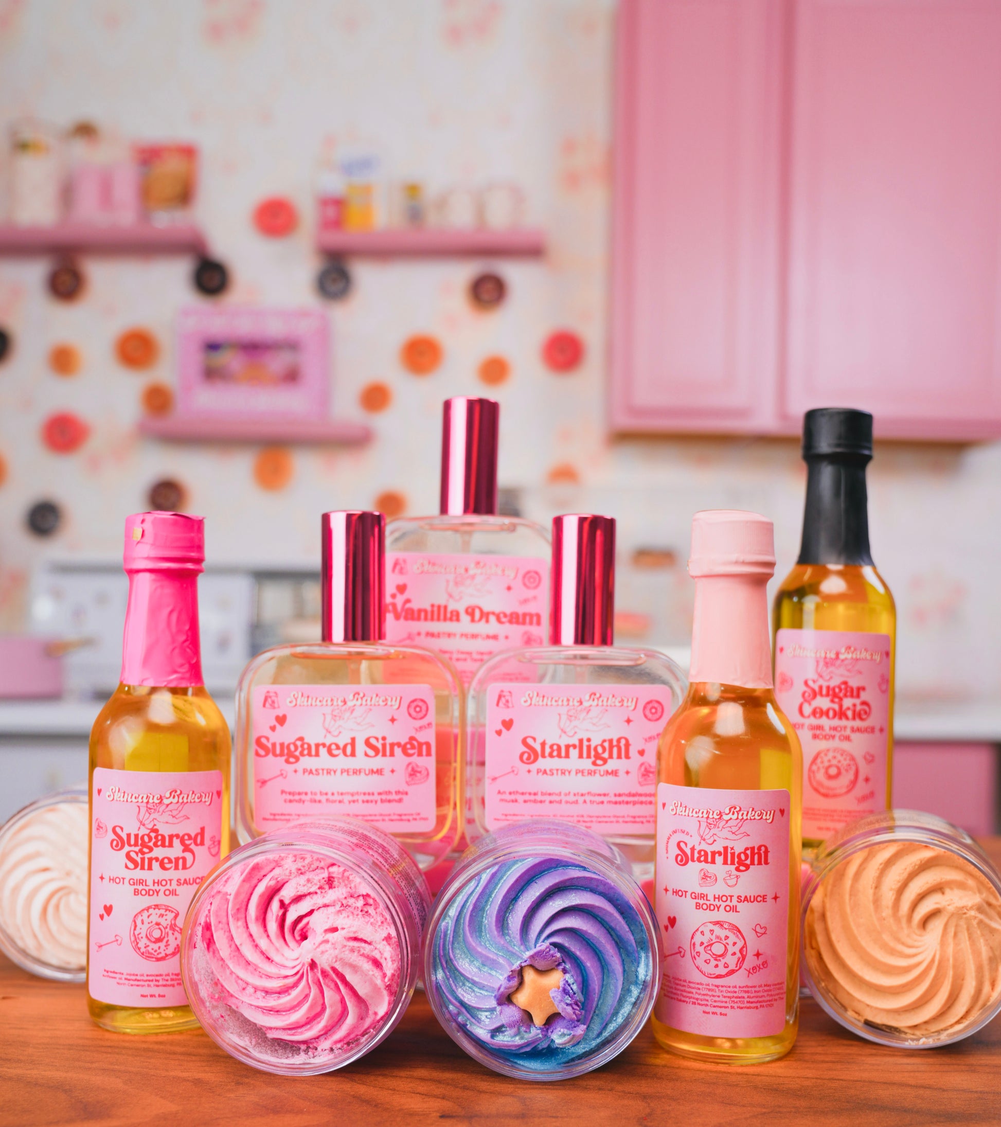 Skincare babes, this limited edition PR box is one-of-a kind! Designed to feel, and look exactly like a donut box! Complete with a transparent window, to pier in to take a look at your half dozen baked body butters! Inside this box you will receive 6 2oz body butters that are an array of different âflavorsâ we have an excellent mix of gourmand, date night, sugary seductions and more! This is truly a masterpiece of fragrances! We canât wait for you to receive you half dozen!Â